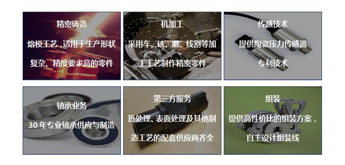 整合集團公司軸承制造、鑄件制造、傳感器制造、機械精加工及物流運輸的資源,為客戶提供從產品設計到制作交付一站式高效便捷的服務。